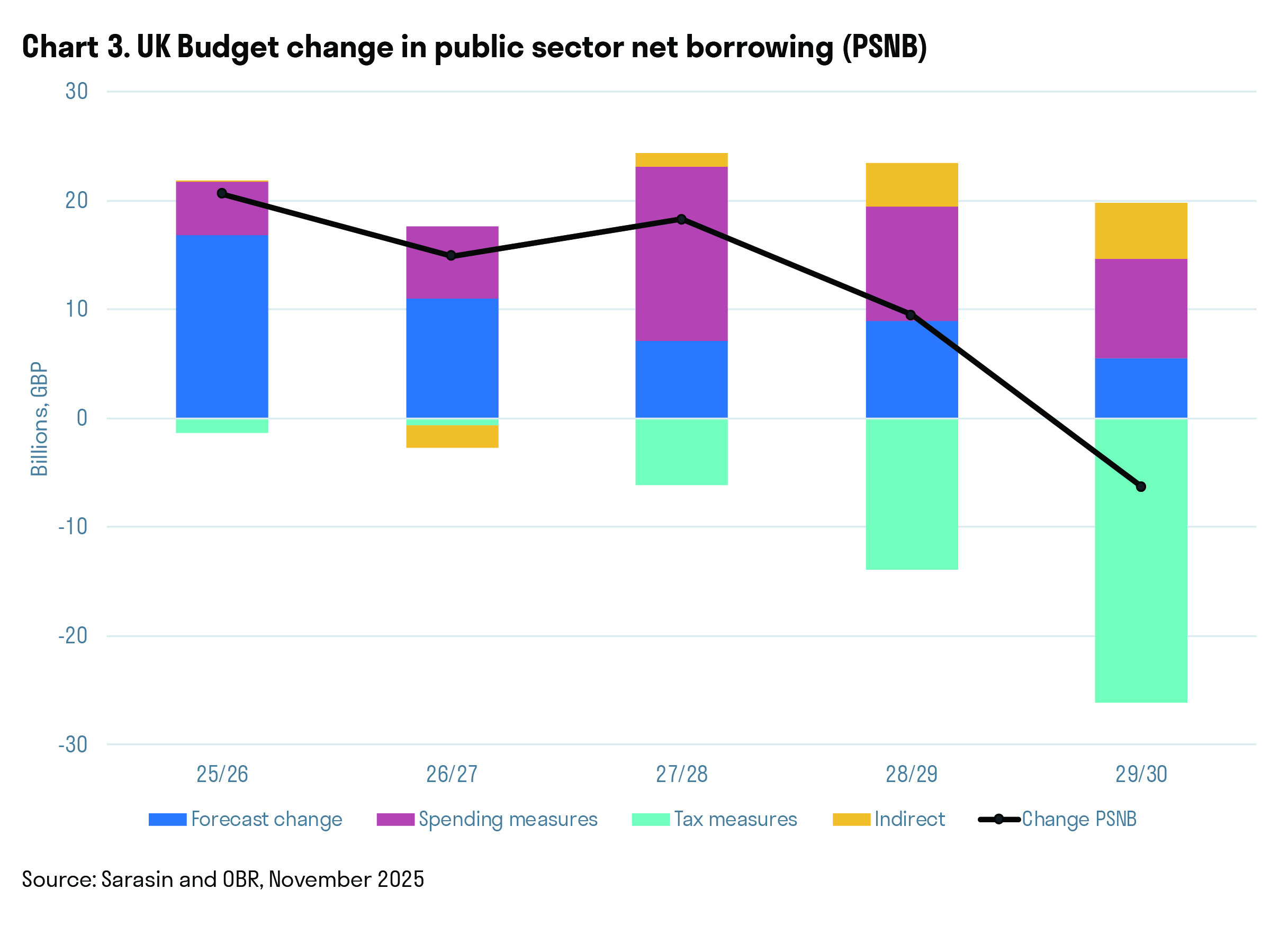Higher public sector net borrowing in the short term is expected to see debt-to-GDP rise relative to today, despite the Government meeting its fiscal rules. The final-year buffer has increased to £22 billion, providing some additional headroom.