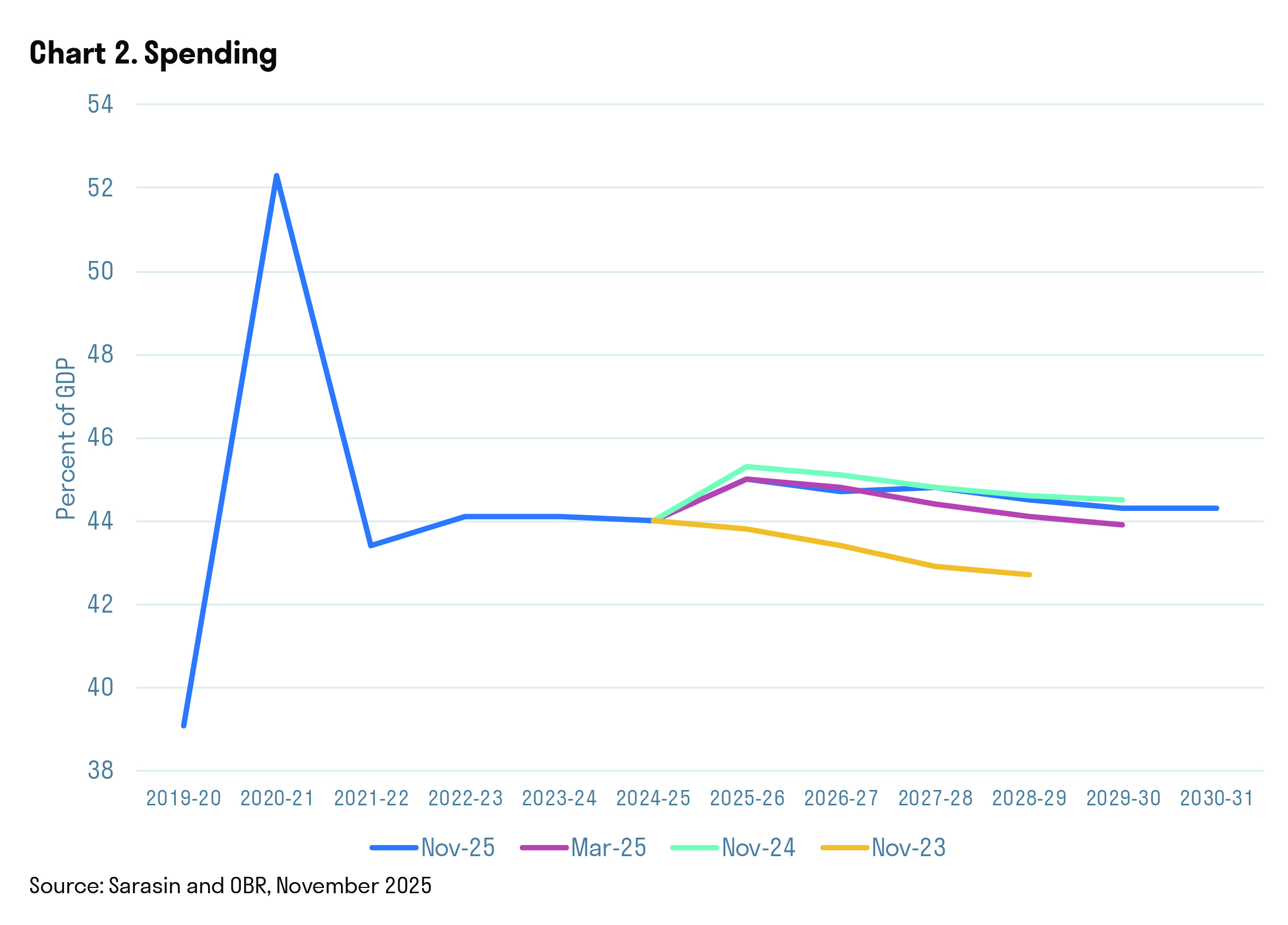 Labour’s budget will expand public spending and taxes significantly for a second straight year. It is a missed opportunity for more substantial reform. Many of the targeted measures – higher taxes on pensions, dividends and savings – disincentivise investment and run counter to the government’s long-term objective of raising productivity and growth. Instead of rationalising a welfare state that expanded substantially during a health emergency, it marginally expands it. At a very high level, a growing public sector footprint will draw resources away from the more productive private sector.